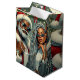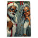 Santa and a companion are ready to celebrate, both wearing stylish Christmas-themed outfits. They stand against a backdrop of holiday lights and decorations, ready for a festive gathering.