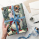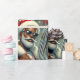 Santa and a companion are ready to celebrate, both wearing stylish Christmas-themed outfits. They stand against a backdrop of holiday lights and decorations, ready for a festive gathering.