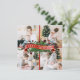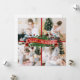 A festive christmas holiday card, featuring a photo collage of 4 of your favorite pictures, designed as a christmas gift, with wintery foliage and berries with 'Merry Christmas' ribbon in red and gold. On the reverse you can write a message about your year, which is signed 'with love' and your name and year.