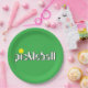 Festive PICKLEBALL Text Bright Green Background Paper Plate
