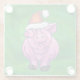Festive Pig in Santa Hat on Green Glass Coaster