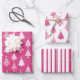 Festive Pink and White Christmas Tree Pattern Wrapping Paper Sheet