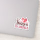 Embrace the holiday spirit with a vibrant pink sticker that exclaims the joy of the season. Adorned with cheerful ornaments, this design radiates festive energy, perfect for decorating gifts, cards, and personal spaces during Christmas celebrations.