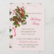 Festive Pink Holly and Silver Bells Christmas Invitation