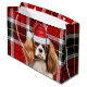 Dog lovers will adore receiving or giving this cute holiday season gift bag, with a cute Cavalier King Charles Spaniel dog on a festive red and green plaid patterned background.