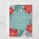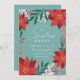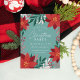 This festive Christmas party invitation features a border of hand-drawn Poinsettia florals and leaves in red and green. The Christmas" text is not editable, but the rest of the text is. The back of the card can also be customised.