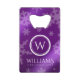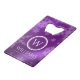 Add a festive touch to year-end and Christmas celebrations with this elegant bottle opener, which features snowflakes falling on a faux metallic purple foil / ombre / moire background. Add initial / monogram (or logo), name, year, or custom text as desired.