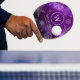 Add a festive touch to year-end and Christmas celebrations with this elegant table tennis paddle, which features snowflakes falling on a faux metallic purple foil / ombre / moire background. Add initial / monogram (or logo), name, year, or custom text as desired.