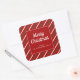 Festive Red And Green Stripes Merry Christmas Square Sticker.