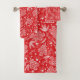 Festive Red and White Christmas Tree and Holly Bath Towel Set