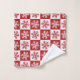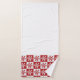 A festive bathroom towel set for the holiday season. A red and white snowflake pattern.