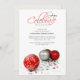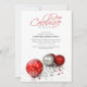 Stylish Christmas Party invitations featuring a stunning photograph of red and silver Christmas Tree decorations and the words Celebrate the Season. Perfect for Christmas Dinner parties, festive celebrations, or family gatherings. Easy to personalise with your own party information. Original photograph by pixabay.com, adapted by Lisa Marie Robinson.