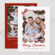 This elegant holiday Merry Christmas card features a trendy watercolor red bow with a ribbon frame around the photo on the front, and 3 photos on the back with a customisable Christmas message.
