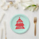 A cheerful and fun red Christmas tree spreads a message of holiday cheer with the message to "eat, drink and be merry" in fun and carefree typography. Use these aqua plates for your holiday dinner or a seasonal party.