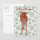 Festive Red Fawn Green Snowflake Postcard Christm
