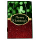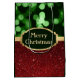 Festive Red Glitter and Green Bokeh Christmas Medium Gift Bag