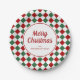 Festive Red Green Checks Merry Christmas Paper Plate