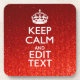Your personalised Keep Calm saying on a fine custom fire red glamour style decor. A personalised Keep Calm style saying on a one of a kind gift. Humourous or whimsical try on your creative words on two editable lines of text. Remember to use CAPITAL letters for best results.