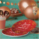 Serve up an unforgettable Christmas party (and be the talk of the table) with this festive paper plate, which features the words "love, peace, and joy" in serif and script lettering surrounded by twinkling orange snowflakes on a warm red gradient background. Customise with the family name and/or text of your choice.