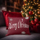 Festive Red Merry Christmas Embellished Decorative Cushion