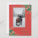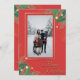 Send classic holiday greetings with this festive red Merry Christmas photo card. The design features elegant gold script, sparkling stars, and evergreen branches with ornaments framing your favourite photos on both the front and back. Personalised with your family name and seasonal message, this flat card is a beautiful way to share warm wishes with friends and loved ones this Christmas.