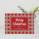 Personalised Festive Red Plaid Christmas Script Holiday Card.