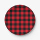 Festive Red Plaid Pattern Holiday Paper Plate