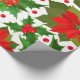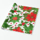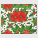 Festive Red Poinsettia Flower & Christmas Holly Wrapping Paper