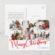 Festive Red Script Merry Christmas five photo Holiday Postcard