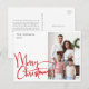 Festive Red Script Merry Christmas One Photo Holiday Postcard
