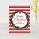 Festive Red Stripes Holly Wreath Merry Christmas Card
