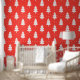 Festive red white Christmas tree pattern tiled Wallpaper