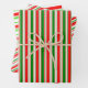 Festive Red, White, Green Coloured Lined Patterns Wrapping Paper Sheet