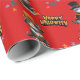 This Halloween wrapping paper showcases a collection of spooky yet charming witch cats dressed in black and orange costumes, each with unique hats and accessories. Set against a red background, the design is accented with skull candies, orange and purple stars, and bold “Happy Halloween” lettering. A perfect mix of creepy and cute, making it ideal for wrapping gifts and treats during the Halloween season. AI-assisted design.