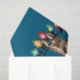 Bring a playful splash of holiday cheer to your gifts with this illustrated reindeer tissue paper. The warm, hand-painted style reindeer peeks out from a rich teal background, tangled in colorful string lights and wearing a cozy Santa hat — a scene that feels both whimsical and nostalgic. Bring a joyful vibe through the holiday seasons.