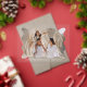 Make your holiday greetings unforgettable with this stylish and modern acrylic holiday photo card! Featuring a retro wavy frame, this card beautifully showcases your favourite horizontal photo on a clear acrylic background. Add a personal touch with a custom greeting (like "Merry Christmas") and your family name in elegant white lettering. Perfect for spreading joy to friends and family, this customisable Christmas card is a trendy way to share your holiday cheer.
