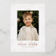 Cute holiday photo card featuring your vertical photo framed in white with a background of rose gold foil snowflakes. "Warm Wishes" is displayed in a whimsical rose gold foil script. Personalise the snowflake holiday photo card with the year and your family name. The card reverses to display your custom message in white lettering with a solid dusty rose background.