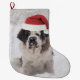 Festive Saint bernard dog with santa hat Large Christmas Stocking