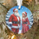 Santa Claus and Mrs. Claus stand amidst a picturesque snowy forest, evoking festive holiday joy and cheer in a serene winter setting.