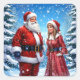 Festive Santa Claus and Mrs. Claus Square Sticker