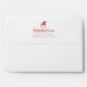 Festive watercolor Santa hat, Christmas envelope with return address and red holiday stripe pattern lining.