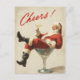 This playful Christmas artwork features a jolly Santa lounging inside a martini glass, raising a cocktail with a joyful grin. The painterly vintage style and bold “Cheers!” lettering create a fun, celebratory mood. Perfect for festive décor, holiday cards, party invites, and gifts that bring humor, charm, and spirited Christmas cheer.