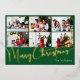 Festive Script Green 9 Photo Merry Christmas Gold Foil Holiday Card