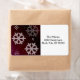 A pretty design featuring snowflakes in various shapes and sizes on a cranberry red background. Elegant swirls accent it. Customise with your address as desired.