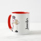 Add a touch of Whimsy and Fun to your Mornings with this Adorable Snowman Mug! This Charming Christmas Mug features a Snowman that is too Cute! He is holding a Santa Mug that is full to the brim with whipped cream. He is also holding a Gingerbread Man Cookie. You can easily Personalise this Snowman Mug by adding Your Own Name! Personalise this Festive Christmas Mug to your Hearts content!
