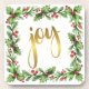 Festive square holly wreath with red berries all around the edge. In the centre is a faux gold foil "joy" in a decorative script font. These cute coasters are the perfect addition to your holiday celebrations! Look in the Christmas section for lots more holiday partyware and decorative household items.
