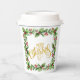 Festive square holly wreath with red berries all around the edge. In the centre is a faux gold foil "Merry Christmas" in a decorative script font. These cute Christmas paper cups are the perfect addition to your holiday table! Look in the Christmas section for lots more holiday partyware and decorative household items.