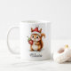 Bring some playful cheer to your morning coffee with this delightful, customizable design! It features a bright-eyed, festive squirrel wearing a tiny Santa hat and proudly holding an acorn painted with fun red and green stripes. Rendered in a soft watercolor style with fluffy tail and warm hues of brown, red, and green, this mug is perfect for anyone who loves woodland creatures and holiday fun!