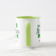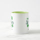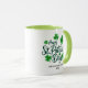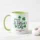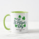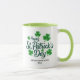 Festive St. Patrick's Day with Shamrock Border Mug. The design is a graphic illustration for St. Patrick's Day, featuring several key elements: