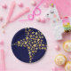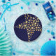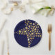 Stylish, elegant FESTIVE STARS paper plates in blue and gold colour theme, with HOLIDAY BLESSINGS in subtle tiled background pattern and faux gold stars. Part of the FESTIVE STARS Collection.